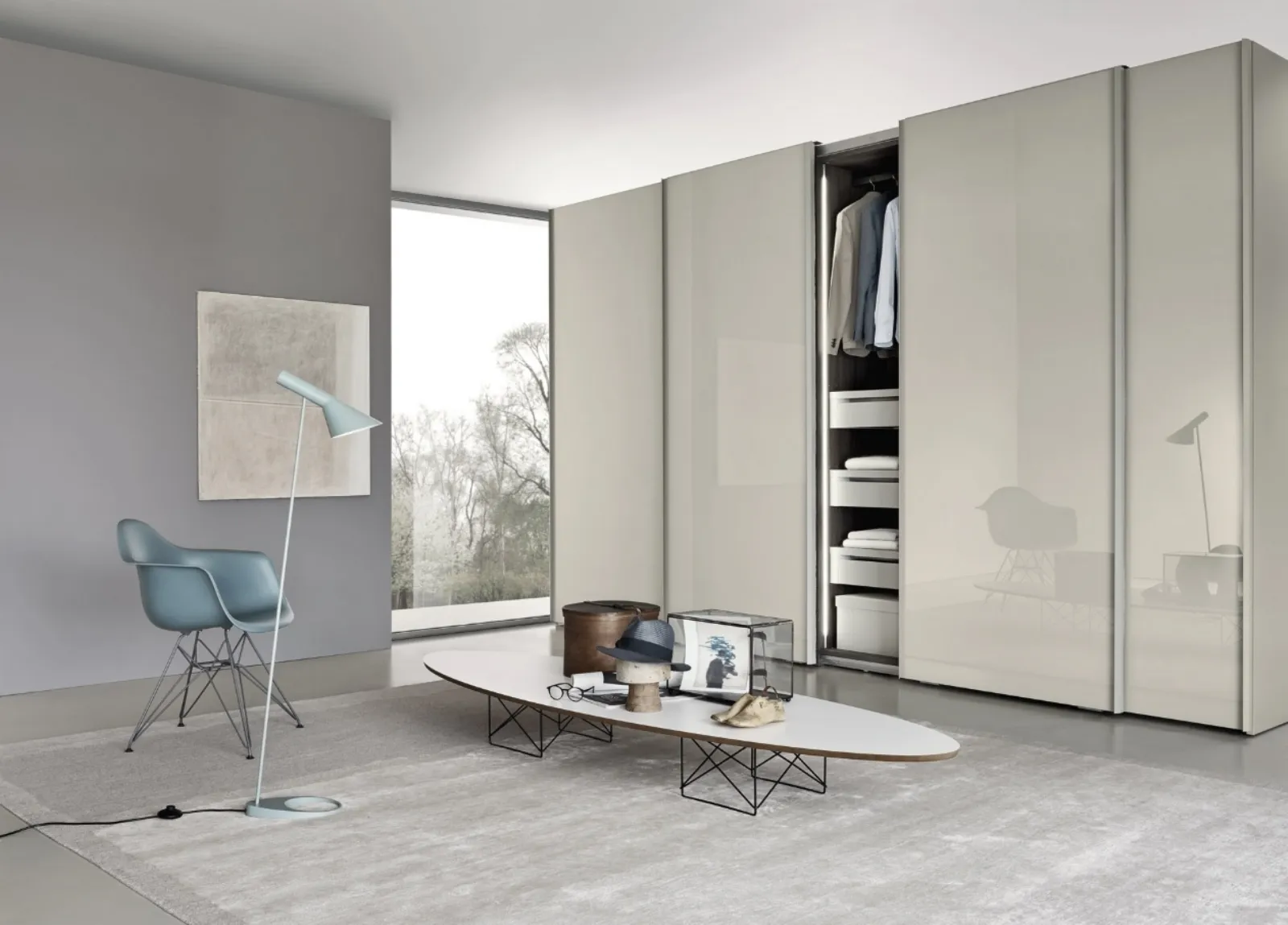 La camera da letto è dedicata al riposo, deve quindi risultare arredata al meglio e completa di mobili e complementi capaci di creare un'atmosfera sempre distensiva. Contattaci per informazioni e preventivi e potrai completare la camera da letto che hai sempre sognato grazie ad una diversificata gamma di mobili contenitori design come quest'armadiatura in vetro nella fotografia. Per completare ottimamente il concept d'arredo, opta per le nostre proposte di Arredamento Casa dei migliori produttori, letti, armadi e comò vari per buon gusto, grandezza e materiale. Armadio Ala Vetro Juta di Sangiacomo: compila il form, contattaci e dai vita alla stanza del relax come l'avevi immaginata.