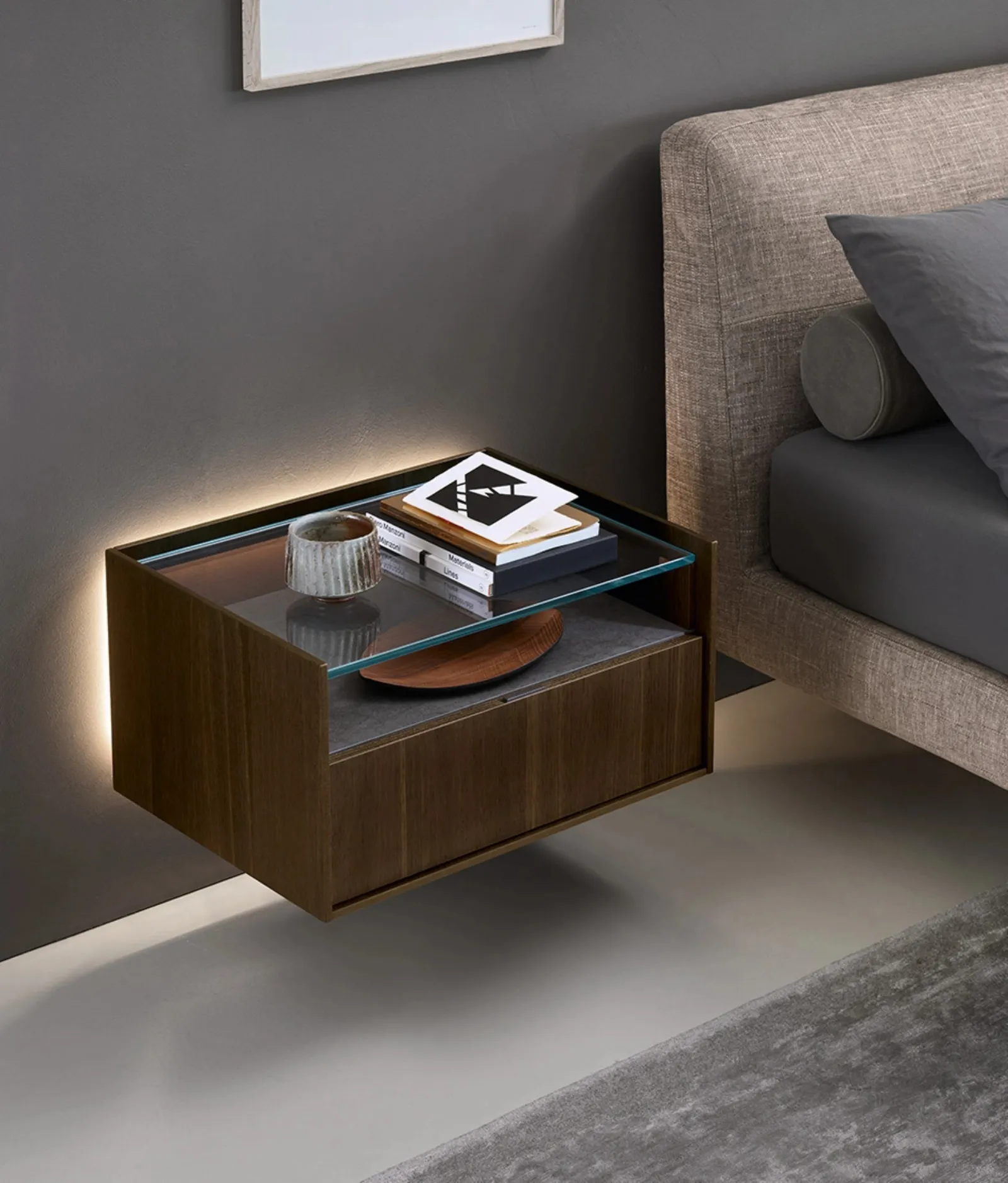 La zona del riposo comprende anche i Comodini: contenitori d'uso quotidiano che danno l'occasione di riporre piccole cose e avere a disposizione superfici di appoggio per diversi usi. Valorizza i tuoi interni scegliendo composizioni di arredi coordinati o crea esteticamente gradevoli abbinamenti di stile e cromie per merito del catalogo di mobili e complementi per la zona del riposo che proponiamo, come il modello in legno mostrato in foto, anche realizzabili su misura. Comodino Cabaret Glass di Sangiacomo: contattaci e scopri di più sulle nostre composizioni e arreda la camera come l'hai sempre immaginata.