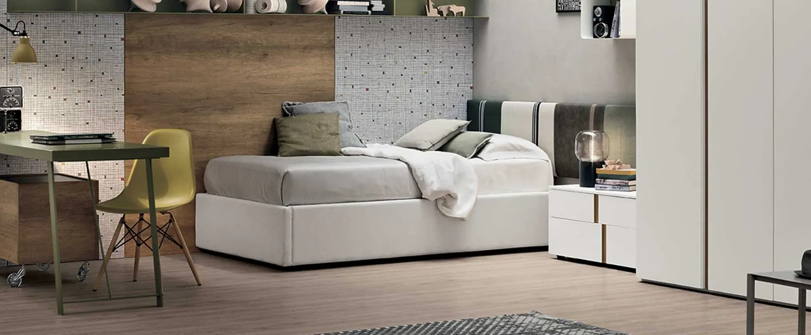 Una ricca gamma di letti classici in tessuto ti aspetta: il marchio Tomasella propone molteplici versioni di letto, che rispondono sempre alle necessità dei bambini. Ottieni informazioni sul Letto Singolo con testiera Diagonal di Tomasella nella fotografia: è la soluzione per creare ottimamente un ambiente accogliente, bello e ben organizzato, ideale per i tuoi figli. Materiali di qualità e vernici atossiche connotano le proposte della marca: se la stanza ha misure contenute, sono disparate le soluzioni disponibili, sempre in grado di abbinare ergonomia e sicurezza.