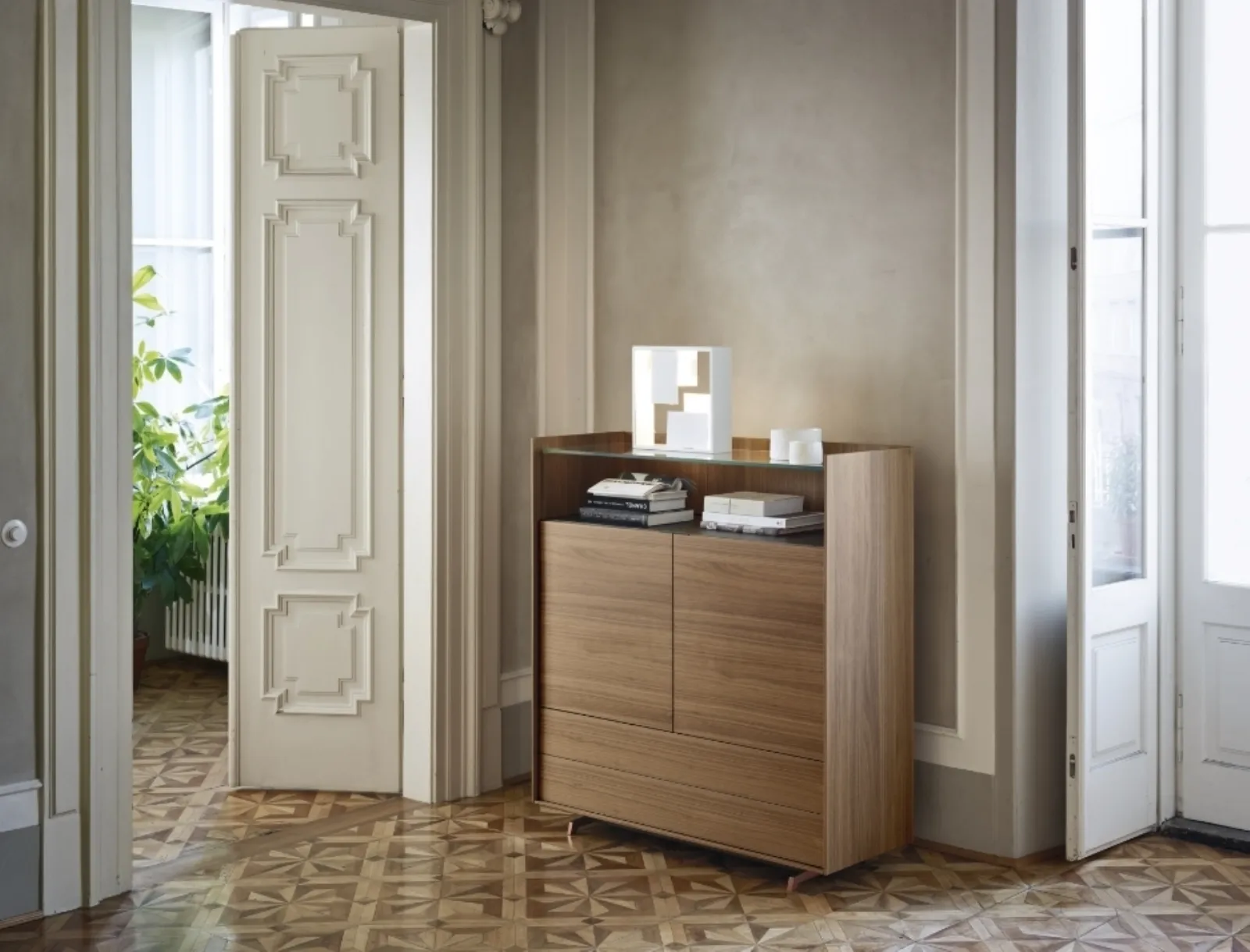 Se desideri una madia in legno da inserire nella tua casa, non lasciarti sfuggire l'occasione di toccare con mano le nostre esclusive composizioni arredative. Le Madie servono per organizzare oggettistica varia, libri e giornali, nonché a dare valore al locale coniugando perfettamente doti di praticità e design. Tieni presente che spesse volte accoglierai a casa familiari e amici per qualche ora in compagnia: è essenziale che lo spazio sia ben gestito e di grande valore estetico. Per un living o una zona pranzo che si rispetti, scegli questa Madia Cabaret 33C di Sangiacomo in legno tra le molteplici composizioni moderne dell'azienda. L'acquisto delle Madie per il soggiorno o per la zona pranzo ha a che fare con lo spazio libero, ma coinvolge anche lo stile dell'ambiente e le proprie necessità.
