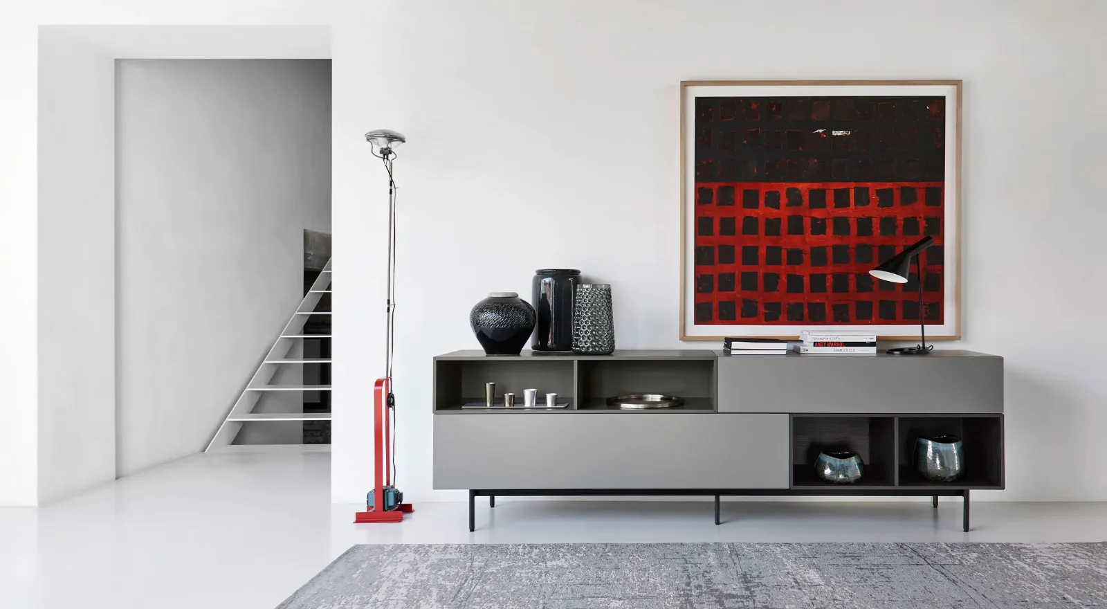 Anche in un soggiorno di dimensioni contenute, questi mobili soggiorno possono risolvere diverse esigenze abitative garantendo diverse possibilità di personalizzazione su misura. Se sei un appassionato di arredo e sei sempre aggiornato riguardo l'evoluzione del design nel campo, il nostro showroom è il luogo ideale per te. Se cerchi un modello di madia salvaspazio, scopri nel nostro punto vendita un ricco catalogo di Arredamento Casa dei migliori brand e contattaci per informazioni e preventivi. La Madia Open 02 di Sangiacomo in foto in laccato opaco risolve le più personali esigenze di spazio e stile, arredando il soggiorno con funzionalità e uno stile unico.