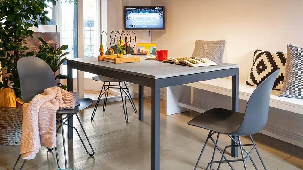 Se cerchi un tavolo da cucina di alto contenuto estetico, contattaci e ricevi informazioni e preventivi sul modello visibile in foto. Ideali per dare vita a degli accostamenti unici con sedute e complementi moderni, i Tavoli allungabili della marca sono soluzioni tra le più esclusive in commercio, ideali per il soggiorno e la zona cucina. Un modello come quello nella fotografia, in abbinamento alle giuste sedute, saprà completare il look delle stanze di casa dedicate per eccellenza all'ospitalità. Tavolo allungabile Snap di Connubia: realizzato in materiali pregiati è caratterizzato dalle linee decise del top e da un basamento ricercato ed elegante.